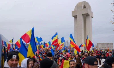 Călin Georgescu a ajuns cu întârziere, luni, la Monumentul Unirii, unde anunţase pe pagina de socializare că se va întâlni cu simpatizanţii săi. El nu a făcut declaraţii, fiind flancat de mai mulţi bodyguarzi.