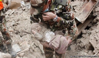 Insa cand se asteptau mai putin si se pregateau sa isi incheie operatiunile de cautare, echipele de salvare au auzit un strigat de sub daramaturi. Un baiat in varsta de 15 ani era prins sub daramaturile unei cladiri de cinci etaje din Kathmandu. Salvatorii au reusit sa indeparteze daramaturile si l-au gasit intr-un spatiu extrem de ingust sub o bucata de tabla.