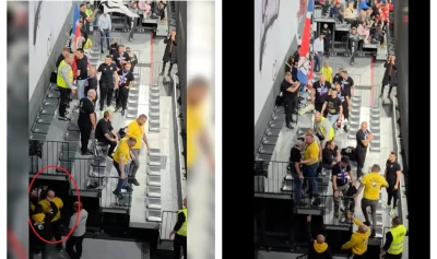 Mai mulți suporteri ai echipei oaspete au avut un conflict cu cei de la firma de pază. A fost o bătaie în toată regula care s-a încheiat cu dinți sparți și vânătăi.