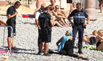 Mai multe fotografii au apărut pe rețelele de socializare, cu un caz controversat de la Nisa. Polițiști înarmați confruntă o femeie musulmană și o obligă să se dezbrace de burkini, potrivit The Guradian. Imaginile arată cel puțin patru polițiști care stau lângă femeie care se odihnea pe o plajă din apropierea Procenade des Anglais, scena atacului petrecut de ziua Franței, când un bărbat a intrat în mulțime cu un camion.