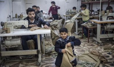 Minori cu varste intre 9 si 13 ani, copii sirieni, sunt angajatii unei fabrici de textile ale carei produse ajung tocmai la cei din cauza carora au fost nevoiti sa fuga din tara.
