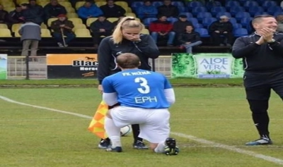 Scene incredibile la un meci de fotbal: Un jucător a cerut arbitrul în căsătorie / VIDEO
