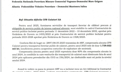 Se închide CFR Călători? Compania riscă să intre în incapacitate de plată, potrivit unei scrisori oficiale transmise ministrului Transporturilor, Sorin Grindeanu, de către directorul general al societății, Traian Preoteasa. Documentul, semnat și de directorul financiar, Aida Hanganu, avertizează că, în lipsa unei finanțări suplimentare, există riscul iminent al opririi traficului feroviar de călători și al anulării trenurilor, în special pe secțiile neelectrificate. „În lipsa unor măsuri rapide, România riscă paralizarea circulației feroviare de călători”, avertizează directorii companiei.