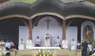 Sfânta Liturghie susținută de Papa Francisc la Șumuleu Ciuc a început, sâmbătă, în jurul orei 11.35. La Șumuleu Ciuc a plouat torențial, timp de câteva ore. Din cauza fenomenelor meteo, programul Suveranului Pontif a suferit o schimbare de itinerar sâmbătă dimineață. Papa Francisc trebuia să aterizeze pe Aeroportul din Bacău, însă din cauza condițiilor vremii, Sanctitatea Sa a aterizat pe Aeroportul din Târgu Mureș.