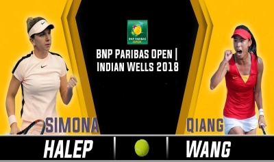 Simona Halep, locul I WTA, a eliminat-o pe chinezoaica Qiang Wang, locul 55 WTA, în optimile de finală ale turneului de la Indian Wells. A fost 7-5, 6-1, în meciul care a dus-o pe Halep în sferturile turneului american. Totodată, a fost prima întâlnire a celor două.