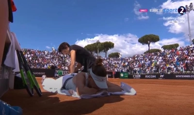 Meciul Simona Halep - Marketa Vondrousova, din turul secund al turneului de la Roma, a început astăzi, la ora 14:10. Partida dintre cele două ar fi trebuit să se joace miercuri, dar a fost amânată din cauza ploii, la fel ca toate celelalte partide de ieri. După ce a câștigat lejer primul set, 6-2, Halep s-a văzut învinsă în actul secund 7-5, de jucătoare de 19 ani. În setul decisiv, Halep a cerut intervenția fizioterapeutului, care i-a spus că are mușchiul de la piciorul drept contractat și s-a luat în calcul retragerea. Simona l-a chemat pe antrenorul său, Daniel Dobre, la 3-2 pentru Vondrousova, pe care l-a întrebat dacă să mai continue sau nu. În cele din urmă, jucătoarea a luat decizia de a continua partida.