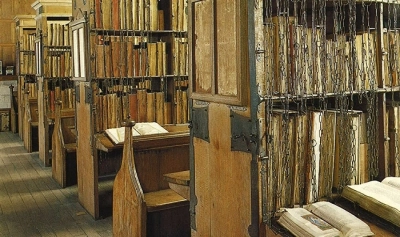 Astfel de biblioteci existau în Evul Mediu, când cărţile erau rare şi, astfel, foarte valoroase. Legarea lor cu lanţuri de rafturi a devenit în întreaga Europă unul dintre cele mai eficiente şi răspândite sisteme de securitate.