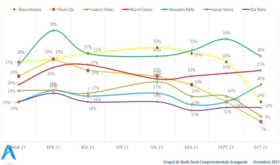 Pe primul loc se află deputatul PSD Alexandru Rafila, cu 30%. Rafila este urmat de liderul PSD Marcel Ciolacu - 25%, primarul din Cluj-Napoca, Emil Boc - 24%.