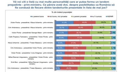 Tandemul Victor Ponta, președinte – Klaus Iohannis, prim-ministru (31% au o părere bună)
