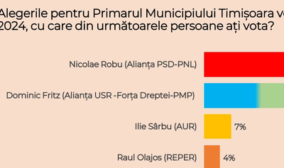 La Timișoara se va da una dintre cele mai aprige bătălii din această campanie electorală. Conform unui sondaj realizat de CURS, cu doar câteva zile înainte de alegeri, Nicolae Robu a trecut în față și ar câștiga în fața lui Dominic Fritz.