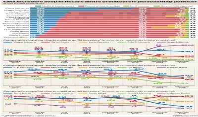 Dacă privim puțin restrospectiv, înainte de alegerile prezidențiale, premierul Victor Ponta era, în luna octombrie, la un scor de 38,7%. În aceeași perioadă, Klaus Iohannis se afla la o cotă de încredere de 35,2%. Comparativ, Klaus Iohannis aproape și-a dublat nivelul încrederii, în timp ce Victor Ponta a pierdut peste 10 procente.