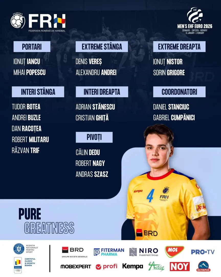 Celelalte două partide din grupa B pentru România: în 20 ianuarie, cu Macedonia de Nord (19.00) şi în 18 ianuarie, cu Danemarca (21.30).