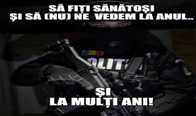 Nici Poliția Română nu s-a lăsat mai prejos și a scos la înaintare artileria grea, spaima infractorilor. MAI a postat o imagine cu un luptător de la trupele speciale, care le-a urat românilor ....să nu ne vedem în noul an!