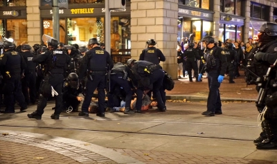 Poliţia din Portland a anunţat că a folosit arme non-letale pentru a îndepărta mulţimea. Mai devreme, agenţii de ordine au încercat să blocheze marşul protestatarilor, dar au fost întâmpinaţi cu o ploaie de pietre şi alte obiecte contondente.