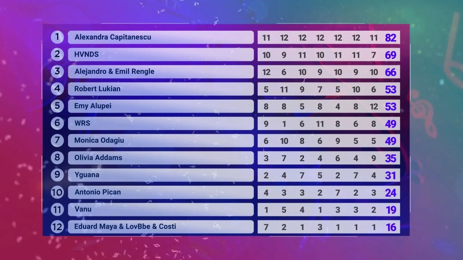 Finala selecției a fost transmisă în direct la TVR 1, TVR Internațional, TVR Moldova și pe platforma tvrplus.ro. În urma votului juriului, Alexandra Căpitănescu a fost desemnată câștigătoare și va reprezenta România în competiția internațională organizată de European Broadcasting Union.