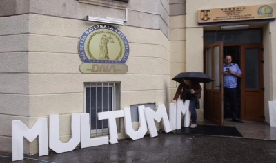 Internauții au reacționat și ei la revocarea lui Kovesi și s-au organizat imediat pentru a merge la sediul Direcției ca să îi mulțumească fostei șefe pentru ceea ce a făcut. Aproximativ 6 persoane au confecționat, din zăpadă artificială, un simplu ”Mulțumim DNA” pe care l-au dus în fața clădiri în care se afla Kovesi.