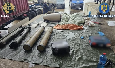 Ieri, 20 noiembrie, în urma controlului vamal efectuat la intrarea în România (vama Albița), persoana în cauză a fost depistată conducând un ansamblu, format din cap tractor și remorcă, în care se aflau 18 rachete antitanc portabil, 8 lansatoare de grenade antitanc, un sistem portabil de apărare antiaeriană și piese ale unei drone.
