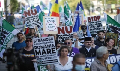Câteva sute de persoane, de toate vârstele, unele îmbrăcate în port popular, purtând icoane şi pancarte cu mesaje anti-LGBT, dar şi împotriva persoanelor publice care susţin comunitatea LGBT au mărşăluit sâmbătă prin centrul Capitalei, manifestaţia, organizată de Noua Dreaptă, precedând Bucharest Pride.