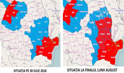 Sursele pun la dispoziția opiniei publice harta din 30 iulie 2018 și prognoza Comisiei Europene pentru ce se va întâmpla în luna august, în funcție de datele furnizate de la București.