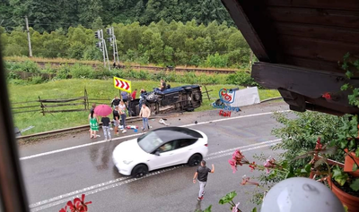 Autovehiculele implicate sunt imobilizate pe a doua bandă, astfel că traficul rutier se desfășoară pe banda de urgență și prima bandă.