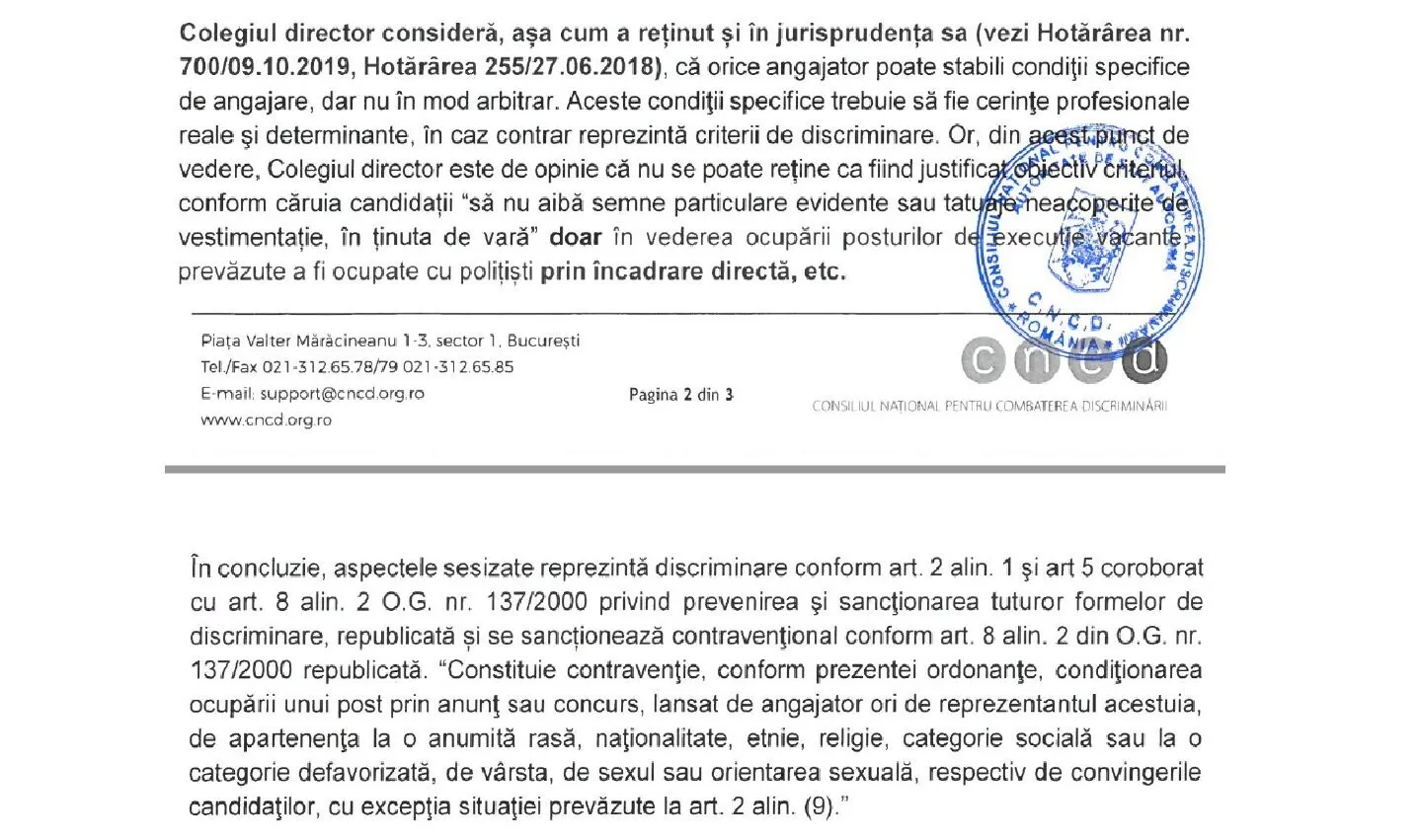 Mesajul său vorbea și despre alte cazuri similare: femei respinse pentru micropigmentarea sprâncenelor și candidați la Poliția Rutieră Moto declarați neîncadrabili din același motiv.