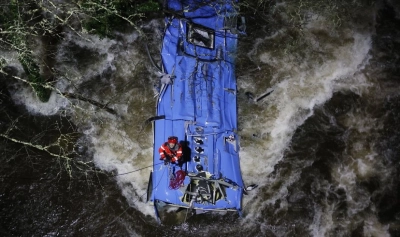 Acesta a derapat de pe un drum drept pe pod din motive care rămân neclare și a plonjat în apă într-o cădere de cel puțin 40 de metri în jurul orei locale 21.30 (2030 GMT).