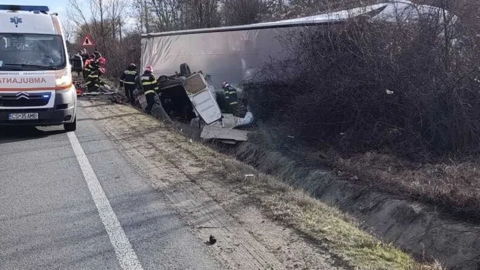 Potrivit ISU Caraş-Severin, duminică după-amiază, pe DN 6, în afara localităţii Domaşnea, a avut loc un accident rutier grav, în care au fost implicate un ansamblu de vehicule şi un microbuz de marfă.