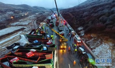 Accidentul, care a implicat 56 de vehicule, a avut loc luni, în jurul orei 9:00 (01.00 GMT) în Shanxi, o provincie aflată la sud-vest de capitala Beijing, "din cauza vremii ploioase şi a zăpezii", a precizat agenţia oficială de ştiri.