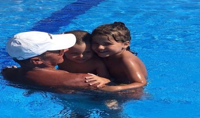 Fostul preşedinte a scris în dreptul imaginilor cu el la piscină şi un mesaj. "Caniculă. Cu Traian Jr. şi Sofia, la scăldat. Singura soluţie să scăpăm de căldură", scrie Traian Băsescu.