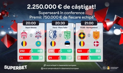 Meciuri obligatoriu de câștigat azi de către echipele românești în turul 3 preliminar Conference League. O primă manșă în care și campioana din SuperLigă, Farul și câștigătoarea cupei și Supercupei, Sepsi și vicecampioana FCSB joacă pe teren propriu.