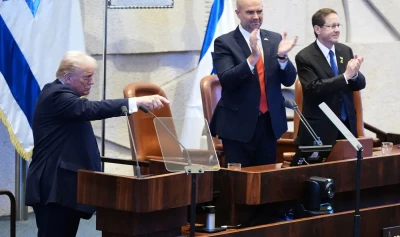 „Pace prin putere, despre asta este vorba”, spune el, repetând ceea ce a spus prim-ministrul Benjamin Netanyahu în discursul său.