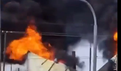 The region's governor said that a warehouse of fuel and lubricants was on fire after a drone attack.
