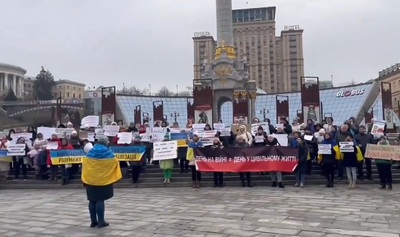 Aproximativ 600 de femei d-au adunat la Kiev pentru a protesta faţă de epuizarea fiilor şi soţilor lor.