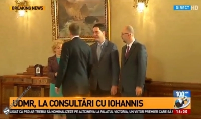 Președintele Iohannis i-a salutat pe liderii UDMR, nu începând cu doamna așa cum ar fi fost normal, ci cu șeful Uniunii și le-a spus ”Mulțumesc!”.