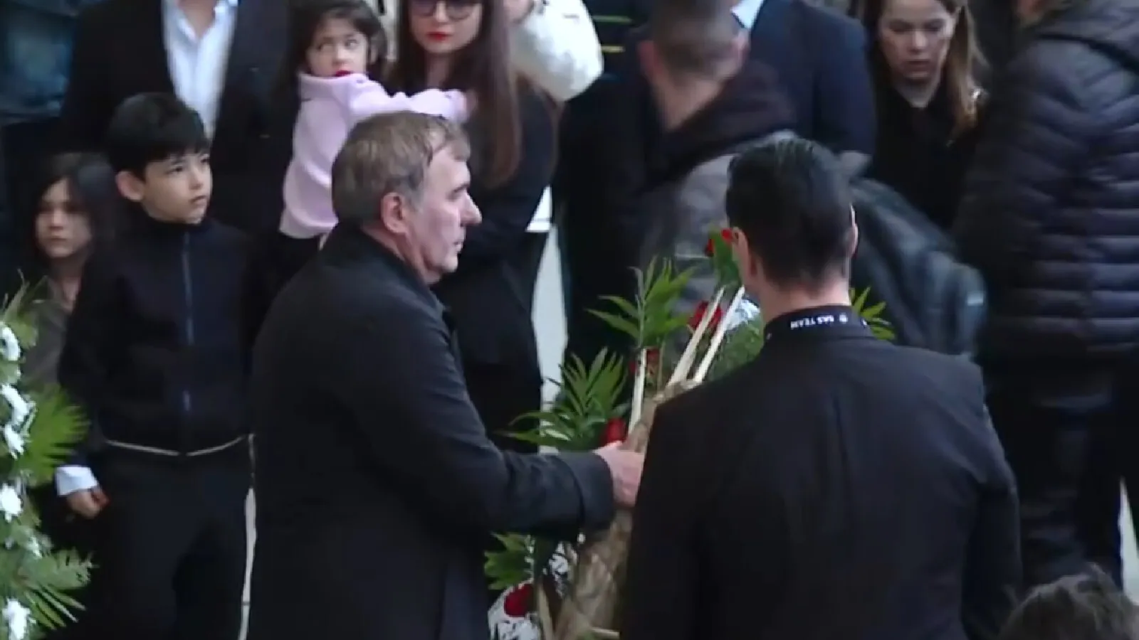 În spatele coșciugului au venit Răzvan Lucescu, fiul lui și soția acestuia.