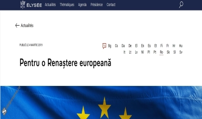 Preşedintele Franţei, Emmanuel Macron, se implică în campania electorală pentru alegerile europene de la sfârşitul lunii mai. În acest sens el a publicat un text într-o serie de ziare din toate cele 28 de state membre ale UE. Acesta se vrea a fi cel mai important text al lui Macron despre Europa după discursul rostit în septembrie 2017 la Sorbona pe aceeaşi temă.