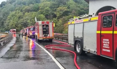 Centrul Infotrafic anunță că pe DN7, tronsonul kilometric 197-198, în localitatea Călimănești, județul Vâlcea, din cauza unui incendiu, traficul rutier a fost blocat pentru a facilita intervenția echipajelor I.S.U.
