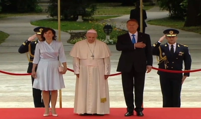 Papa Francisc a ajuns la Palatul Cotroceni unde are loc ceremonia oficială de primire a Suveranului Pontif în prezența președintelui Klaus Iohannis. Sanctitatea Sa va avea întrevederi cu șeful statului și cu premierul Viorica Dăncilă.