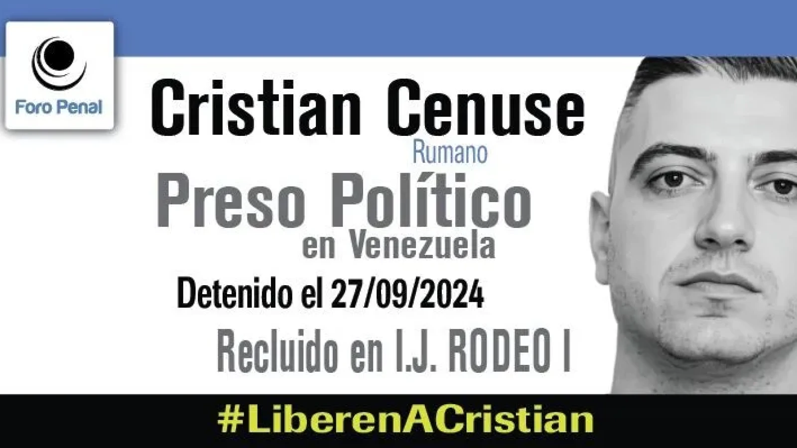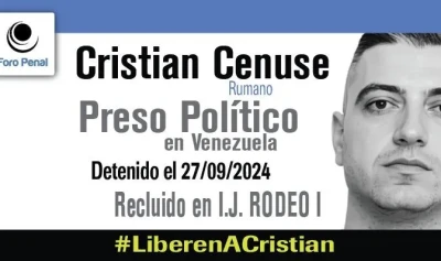 Foro Penal informa, la 1 noiembrie 2025, că românul Cristian Cenuşe, deţinut politic român în Venezuela, a reuşit să comunice cu soţia sa. „Cristian Cenuşe, cetăţean român în vârstă de 37 de ani şi tată al unei fetiţe de doi ani, a fost arestat pe 27 septembrie 2024, de Garda Naţională Bolivariană în San Cristóbal, statul Táchira, în timp ce călătorea cu autobuzul spre Caracas. Era turist în America de Sud şi vizitase anterior Columbia. După 10 luni de dispariţie, Cristian a reuşit în sfârşit să-şi contacteze soţia, spunându-i că se află încarcerat în închisoarea Rodeo I din Venezuela”, a scris Foro Penal într-o postare pe X.