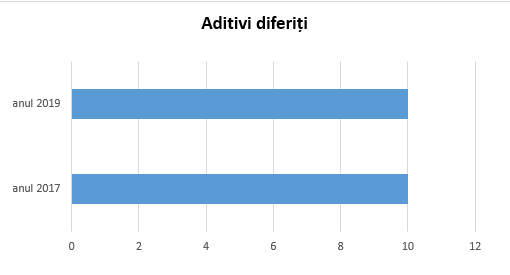 Aditivii prezenți în produsele ce se găsesc în studiile din 2017 și 2019, prezintă o mică schimbare pentru unele produse. Astfel se observă că în studiul din 2019 numarul aditivilor a scăzut, iar pentru alte produse a ramas același.