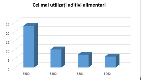 Cei mai utilizați aditivi alimentari au fost: