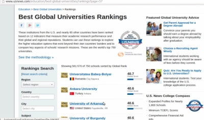 Universitatea Babes-Bolyai, cea mai bine clasată instituţie din România. UBB este cea mai bine clasată universitate din România în cel mai recent top al instituţiilor de învăţământ superior din lume, numit Best Global Universities Rankings, realizat de U.S. News, un portal de educaţie din State. UBB ocupă locul 560 în lume şi poziţia 246 în clasamentul întocmit pe universităţile din Europa.