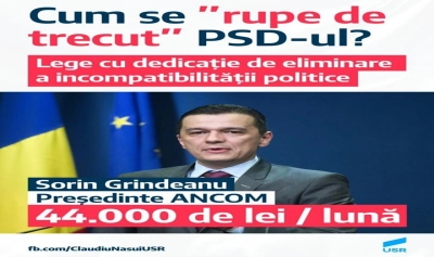 Liderul USR București, Claudiu Năsui, susține că PSD-ul își schimbă năravul doar din vorbe și îl dă ca exemplu pe Sorin Grindeanu. Șef la ANCOM, cu 10.000 de euro pe lună salariu, Grindeanu își păstrează și funcția, dar revine și în PSD.