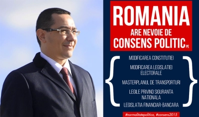 ”România are nevoie de consens politic pe modificare Constituției, modificarea legislației electorale, masterplanul de transporturi, legea privind siguranța natională, legislația financiar-bancară.”, e mesajul lui Ponta.