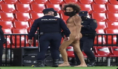 Un bărbat dezbrăcat a pătruns pe teren, joi seară, în timpul meciului Granada – Manchester United, din prima manşă a sferturilor de finală ale Ligii Europa, notează news.ro.