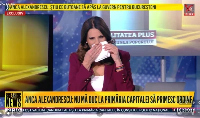 Jurnalista Anca Alexandrescu și-a anunțat marți seară, în direct la postul Realitatea Plus, candidatura la Primăria Municipiului București, un moment emoționant în care a declarat că decizia a fost una dificilă, dar motivată de dorința de a ajuta oamenii.