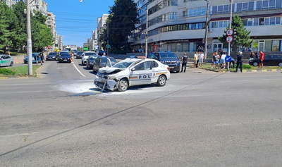 Accidentul a avut loc duminică, în jurul orei 13:10, intr-o intersecție de pe raza municipiului Suceava, între o mașină și o autospecială de poliție.