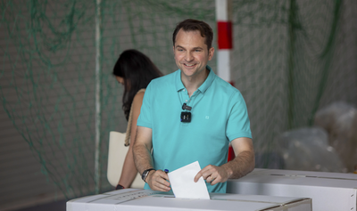 Sebastian Burduja, candidat PNL la alegerile locale din București, a venit de dimineață să voteze. Îmbrăcat în tricou, Burduja a fost relaxat și a discutat cu cei din secția de votare. După ce a introdus voturile în urnă, Burduja și-a făcut cruce.