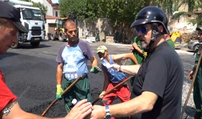 Edilul și echipa sa au împărțit apă, atât muncitorilor, cât și trecătorilor care s-au aflat în miezul caniculei pe străzi.