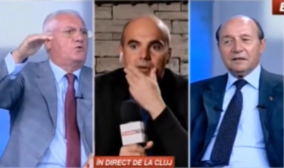 Traian Băsescu şi Dumitru Dragomir au avut un dialog în direct, duminică seara, la România TV. Cei doi s-au contrat pe teme de fotbal şi politică, după ce fostul preşedinte al Ligii Profesioniste de Fotbal a asistat la un dialog între Traian Băsescu şi Rareş Bogdan.